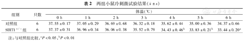 将小鼠置于4 ℃环境并自由取水和进食,每隔1 h用肛温电子温度计(北京东西仪科技有限公司)测定小鼠的肛温,总共测定6 h。