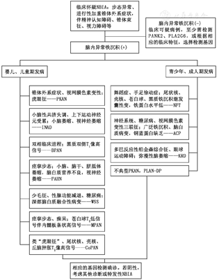 以锥体外系症状为主要临床表现者,需要与原发性肌张力障碍或帕金森病、遗传变性病或其他继发性因素导致锥体外系症状的疾病鉴别。以痉挛性步态为主要表现的亚型,如MPAN、FAHN,应与遗传性痉挛性截瘫鉴别。以小脑性共济失调为主要表现的INAD,尤其是不典型INAD,需要与脊髓小脑性共济失调中某些发病年龄早的亚型进行鉴别。
