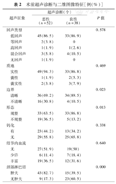 | 超声征象 | 超声诊断(个) | P值 | ||