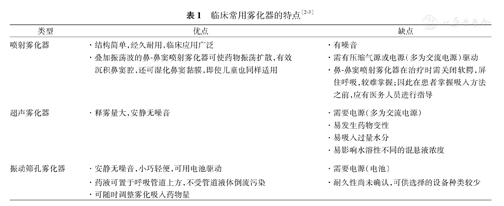 临床常用雾化器的特点见表1。