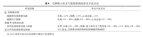 几种吸入性支气管舒张剂的常见不良反应