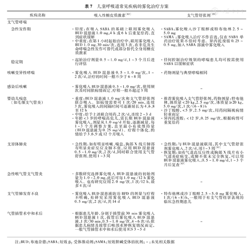 儿童呼吸道常见疾病雾化吸入治疗方案可参见表7。