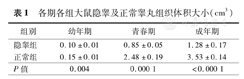 与正常组睾丸相比较,各期隐睾组睾丸体积明显减小,差异有统计学意义(P<0.01)(表1)。