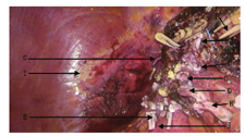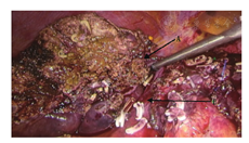 腹腔镜下肝中裂劈开为前入路肝切除技术成功实施的关键,为复杂腹腔镜肝切除术开展提供了一个新的选择,尤其是腹腔镜右半肝切除术,但是目前对于其适应证暂无统一标准,一般认为前入路腹腔镜右半肝切除术适用于切肝前不适合或者不能够游离右肝的情况,比如炎症粘连致密或者肿瘤较大侵犯肝外组织等。但我们体会,腹腔镜右半肝切除、尾状叶切除、左半肝切除甚至ALPPS等复杂的腹腔镜肝切除术,即便不存在肝脏游离困难的情况,也可以选择腹腔镜下肝正中裂劈开进行前入路肝切除术,但是目前我们没有腹腔镜下肝正中裂劈开后进行单独尾状叶切除的经验。当然需要根据患者病情及术中情况灵活选择手术方式,如果肝正中裂劈开难以继续,可以尝试传统方法;如果腹腔镜手术出血难以控制,及时中转开腹也是必要的。