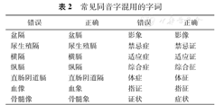 3.同音字的混用。如"象"与"像","膈"与"隔",以及"证""症""征"之间,经常出现错误。列举如下(表2)。