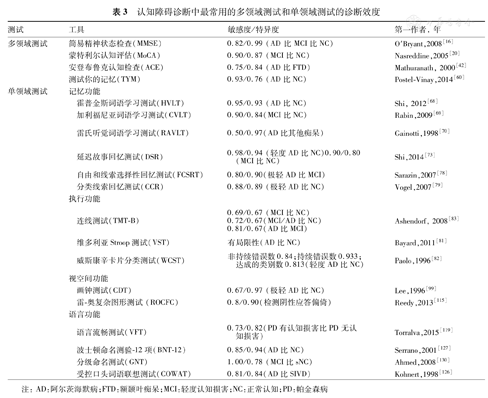 认知障碍诊断中最常用的多领域测试和单领域测试的诊断效度