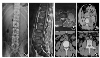 原发性结核性腰大肌脓肿除了单纯局限于腰大肌以外,身体其他部位并无任何活动性感染存在,其病因不清,但普遍认为是细菌经呼吸道感染或者身体其他部位处于静止状态的隐匿感染灶在条件允许的情况下重生所致[4,5,6,7]。结核患者中大约5%并发腰大肌脓肿,其中原发性结核性腰大肌脓肿约占3/4 [8]。原发性结核性腰大肌脓肿多数起病隐匿,病程较长,临床表现缺乏特异性。很少表现为典型的发热、腰背痛和跛行三联症。查体可有明显的椎旁叩击痛,对提示局部深在病变具有重要意义。
