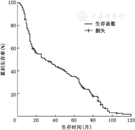 全组573例食管癌患者1、3、5年累积生存率分别为72.5%、46.1%和32.3%(图1)。