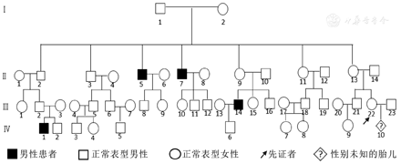 家系调查:孕妇家系共4代49人,其中有耳聋患者4例,无近亲婚配,无其他器官系统疾患(图1)。