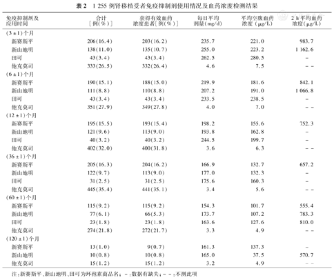 1 255例肾移植受者免疫抑制剂使用情况及血药浓度检测结果