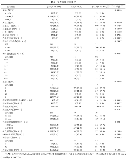 评估中国活体肾移植受者移植前及移植后早期各项因素与急性排斥反应(AR)发生的相关性。