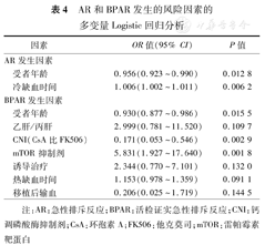 AR和BPAR发生的风险因素的多变量Logistic回归分析