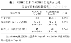 AEMPD组和N-AEMPD组的男女比例、发病年龄和病程数据表