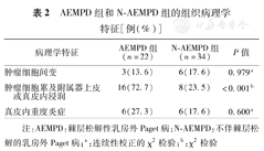| 病理学特征 | AEMPD组(n=22) | N-AEMPD组(n=34) | P值 |