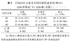 为分析不同治疗方案的血糖达标率,根据2014年美国糖尿病学会(ADA)和2013年中华医学会糖尿病学分会的标准,糖化血红蛋白控制目标为<7.5%(年龄<18岁)或<7.0%(18岁以上成人)。