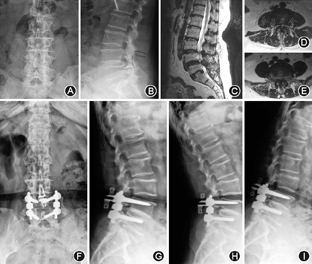 全身麻醉,患者俯卧后正中切口,保护棘上韧带和小关节囊,于关节突内侧1/3~1/2处行椎间开窗减压,去除棘突间软组织连接,修整两棘突的相对缘,适宜高度的Coflex于硬膜囊表面上约1~2 mm为宜(5 mm内是最佳位置);融合节段置入椎弓根螺钉,椎板开窗减压椎间融合。