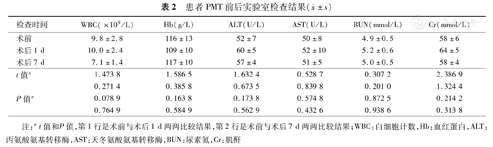±s表示,术前及术后实验室指标比较采用t检验,P<0.05为差异有统计学意义。