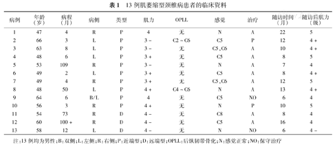 13例肌萎缩型颈椎病患者的临床资料
