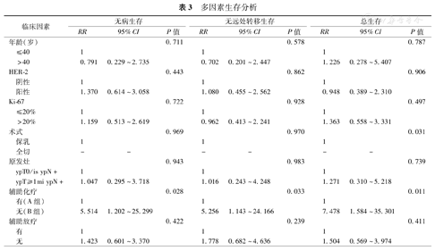 | 临床因素 | 无病生存 | 无远处转移生存 | 总生存 | ||||||||