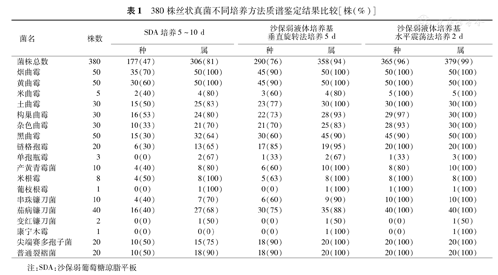 380株丝状真菌不同培养方法质谱鉴定结果比较[株(%)]