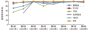 | 检测方法 | 第1次(2011年) | 第2次(2012年) | 第3次(2013年) | 第4次(2013年) | 第5次(2014年) | 第6次(2014年) | 第7次(2015年) | 第8次(2016年) |