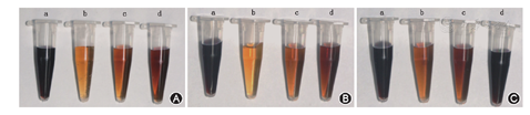 将等量(0.02%)的黑素与相同活性单位(200 U/L)3种木质素降解酶孵育3 h后观察黑素的颜色变化,见图1。LiP对3种黑素的脱色效率为40%~70%,而MnP约为22%~42%,漆酶约为9%~21% (表1)。用碱溶法自毛发和黑素瘤组织中提取到的黑素主要成分是褐黑素[6,7],而多巴氧化法合成的黑素为优黑素[9]。结果提示,LiP对褐黑素和优黑素的脱色作用均明显优于MnP和漆酶。