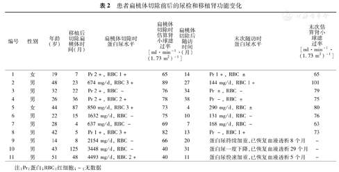 患者扁桃体切除前后的尿检和移植肾功能变化
