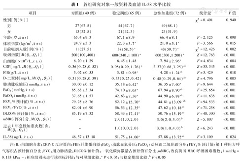 | 项目 | 对照组(40例) | 稳定期组(65例) | 急性加重组(72例) | 统计量 | P值 | |