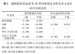 慢阻肺患者血清IL-38单因素相关分析及多元逐步回归分析结果