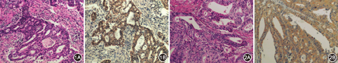 DNA结合抑制因子2(Id2)是一种广泛表达的转录调控因子,属于碱性螺旋-环-螺旋蛋白(HLH)家族成员,Id分子因本身缺乏DNA结合必需的氨基酸序列,与bHLH蛋白结合成二聚体后,可抑制bHLH与DNA及其组织特异性bHLH转录因子结合,从而抑制细胞分化[3,4]。核转录因子κB(NF-κB)是一种多向性核转录调节因子,最常见的是P50/P65二聚体。在大多数细胞中,这些二聚体与抑制蛋白IκB结合形成无活性的三聚体存留于细胞质中,当细胞受到内毒素、活性氧、细胞因子等作用后,NF-κB激活并入核与相应靶基因结合,从而调控多种基因的表达。因其调节细胞因子、黏附因子、炎症介质等表达,在炎症、免疫紊乱等疾病发病机制中已有很多研究,但在肿瘤中的研究相对较少。近年来发现NF-κB还可调节某些抗凋亡基因及细胞增殖基因的表达,因此NF-κB在肿瘤发病机制中的作用日益重要[5]。研究表明,Id2可作用于NF-κB信号通路,二者在免疫反应和肿瘤微环境调控方面起协同效应[6,7]。本研究应用免疫组织化学技术检测胃癌中Id2和NF-κB/P65的表达情况,分析它们与胃癌临床病理因素之间的关系,并探讨其与患者预后的相关性。