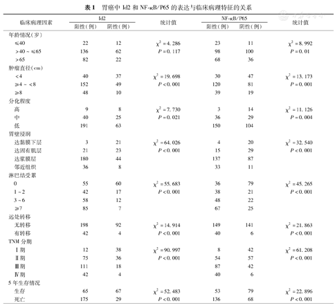 胃癌中Id2和NF-κB/P65的表达与临床病理特征的关系