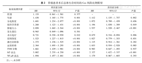 胃癌患者术后总体生存时间的Cox风险比例模型