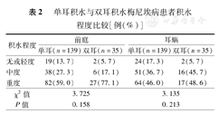 | 部位 | 无或轻度积水 | 中度积水 | 重度积水 | P值 |
