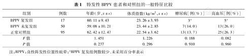 特发性BPPV患者和对照组的一般特征比较