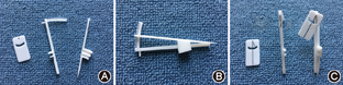 枕骨髁螺钉置钉器主要包括有3个部分:(1)切线固定杆,操作时以头端放置于枕骨髁后缘中点进钉点,操作杆紧靠枕后部,作为枕骨切线;(2)通道杆,与切线固定杆间所形成的夹角即为枕骨切线角,通道杆内通道代表螺钉中轴线;(3)水平板,依靠重力条件,水平板在操作过程中保持垂直位,其中线与通道板间所形成的夹角为内倾角(图1)。