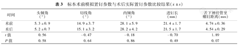 标本术前模拟置钉参数与术后实际置钉参数比较结果(