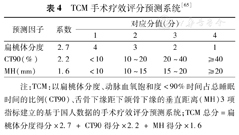 注:TCM:以扁桃体分度、动脉血氧饱和度<90%时间占总睡眠时间的比例(CT90)、舌骨下缘距下颌骨下缘的垂直距离(MH)3项指标建立的基于国人数据的手术疗效评分预测系统;TCM总分=扁桃体分度得分×2.7 + CT90得分×2.2 + MH得分×1.6