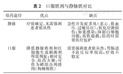 | 静脉 | 疗效确定,无需强调患者依从性 | 急性并发症多见(恶心、低血压、过敏反应);氧化应激损伤;加重感染;抑制白细胞功能;易铁超载;给药时需要医疗监护 |