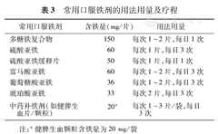 | 常用口服铁剂 | 含铁量(mg/片) | 用法用量 |