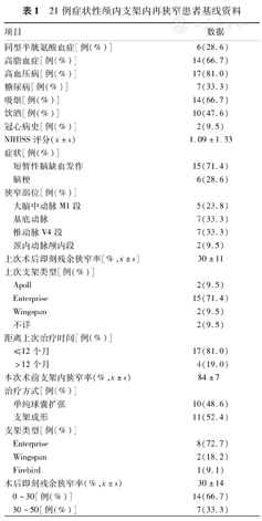 21例症状性颅内支架内再狭窄患者基线资料