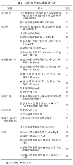 | 得分范围(分) | 级别 | 发生恶性高热可能性 |