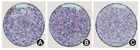 加药组ALP染色明显比其余两组浅,说明加药组中,hMSCs成骨分化能力最弱(图3)。