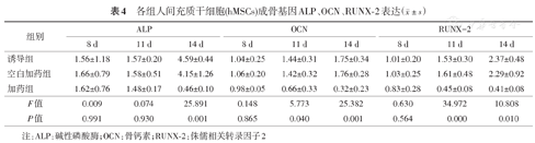 注:ALP:碱性磷酸酶;OCN:骨钙素;RUNX-2:侏儒相关转录因子2