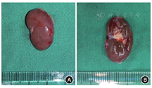 暴露并取出右肾,用生理盐水洗净后观察并拍照,随后将部分肾脏放入4%多聚甲醛内固定24 h后观察并拍照。