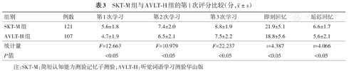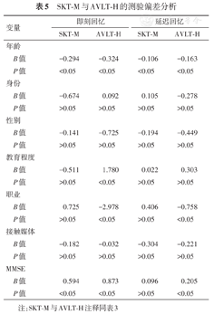注:SKT-M:简短认知能力测验记忆子测验;AVLT-H:听觉词语学习测验华山版