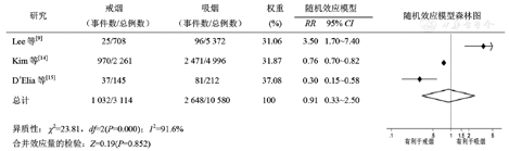 荟萃分析是将相同目的的多项研究资料进行定量合并的统计方法,可获得样本含量较大的研究结果,提高检验的效能。本研究针对戒烟与高血压关系的队列研究进行荟萃分析有以下优势:(1)样本量大,与随机对照临床试验相比,队列研究来自样本产生的原人群,具有良好的可推广性;(2)与随机对照临床试验相比,队列研究有较长的随访时间,因此,可以较好地评估戒烟对高血压发病的影响;(3)与病例对照研究相比,能够较好地降低选择偏倚与回忆偏倚;(4)队列研究可以计算高血压的发病率,而在病例对照研究、横断面研究中则不能。