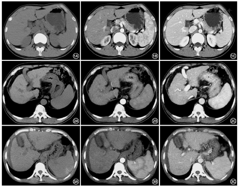| 平扫 | 动脉期 | 门脉期 | 平扫 | 动脉期 | 门脉期 | 平扫 | 动脉期 | 门脉期 | ||