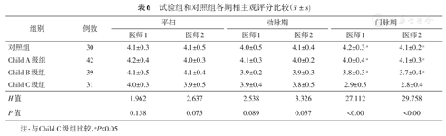 | Child C级组 | 31 | 4.0±0.3 | 3.9±0.5 | 3.9±0.4 | 3.8±0.5 | 2.9±0.5 | 2.8±0.4 |
