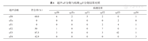 超声uT分期与病理ypT分期结果对照