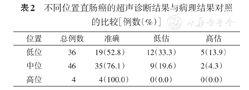 不同位置直肠癌的超声诊断结果与病理结果对照的比较[例数(%)]